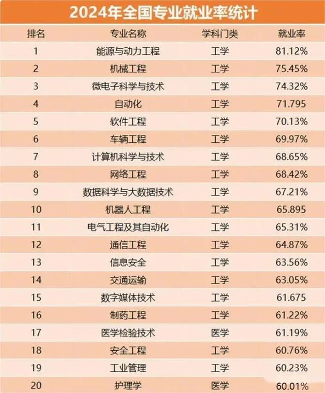 看2024年全國專(zhuān)業(yè)就業(yè)率統計排名前二十榜單會(huì )發(fā)現,工科類(lèi)專(zhuān)業(yè)幾乎占據了榜單前20位。并且與當前的朝陽(yáng)產(chǎn)業(yè)緊密相連的新興技術(shù)專(zhuān)業(yè),其就業(yè)機會(huì )更多,比如通信工程、信息安全、數字媒體技術(shù)等等,都是當下的熱門(mén)就業(yè)領(lǐng)域。
