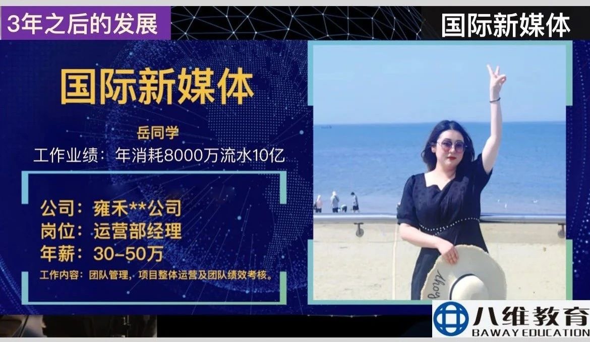 八維教育國際新媒體專(zhuān)業(yè)六個(gè)月直播運營(yíng)管理實(shí)戰班的努力與付出取得了顯著(zhù)成效。2024 年,該專(zhuān)業(yè)學(xué)生實(shí)現了高質(zhì)量的就業(yè)率,75% 的學(xué)員成功進(jìn)入知名企業(yè),薪資達到 15500 元。直播運營(yíng)崗位企業(yè)薪酬定位月薪 3 萬(wàn) - 8 萬(wàn),部分企業(yè)提供 14 薪 - 16 薪;千川投手薪資起步于 30k,上限可達 55k。這些驕人的成績(jì),充分證明了八維教育在打造直播運營(yíng)管理核心能力方面的卓越能力。