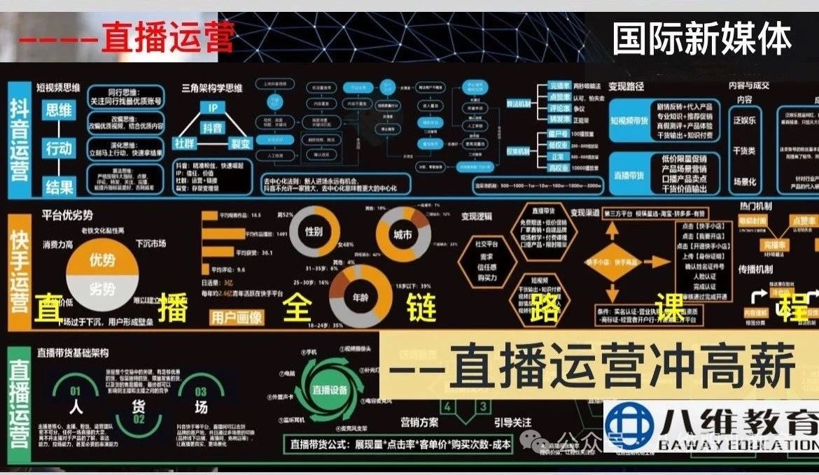 國際新媒體專(zhuān)業(yè)則致力于打造直播運營(yíng)領(lǐng)域的精英,課程設置緊密?chē)@直播運營(yíng)的實(shí)際需求 。學(xué)生學(xué)習新媒體運營(yíng)、直播策劃與執行、粉絲運營(yíng)與維護等課程,通過(guò)實(shí)踐項目參與真實(shí)的直播活動(dòng),掌握直播運營(yíng)的核心技能,包括直播內容策劃、直播互動(dòng)技巧、數據分析與優(yōu)化等 。這使得八維教育國際新媒體專(zhuān)業(yè)的畢業(yè)生在面對直播運營(yíng)崗位時(shí),能夠迅速上手,制定出有效的直播運營(yíng)策略,提升直播的效果和影響力 。在當前新媒體行業(yè)快速發(fā)展的背景下,八維教育傳媒與新媒體專(zhuān)業(yè)的畢業(yè)生憑借其專(zhuān)業(yè)的技能和實(shí)踐經(jīng)驗,在就業(yè)市場(chǎng)上具有明顯的優(yōu)勢,能夠獲得豐厚的薪資待遇和廣闊的職業(yè)發(fā)展空間 。