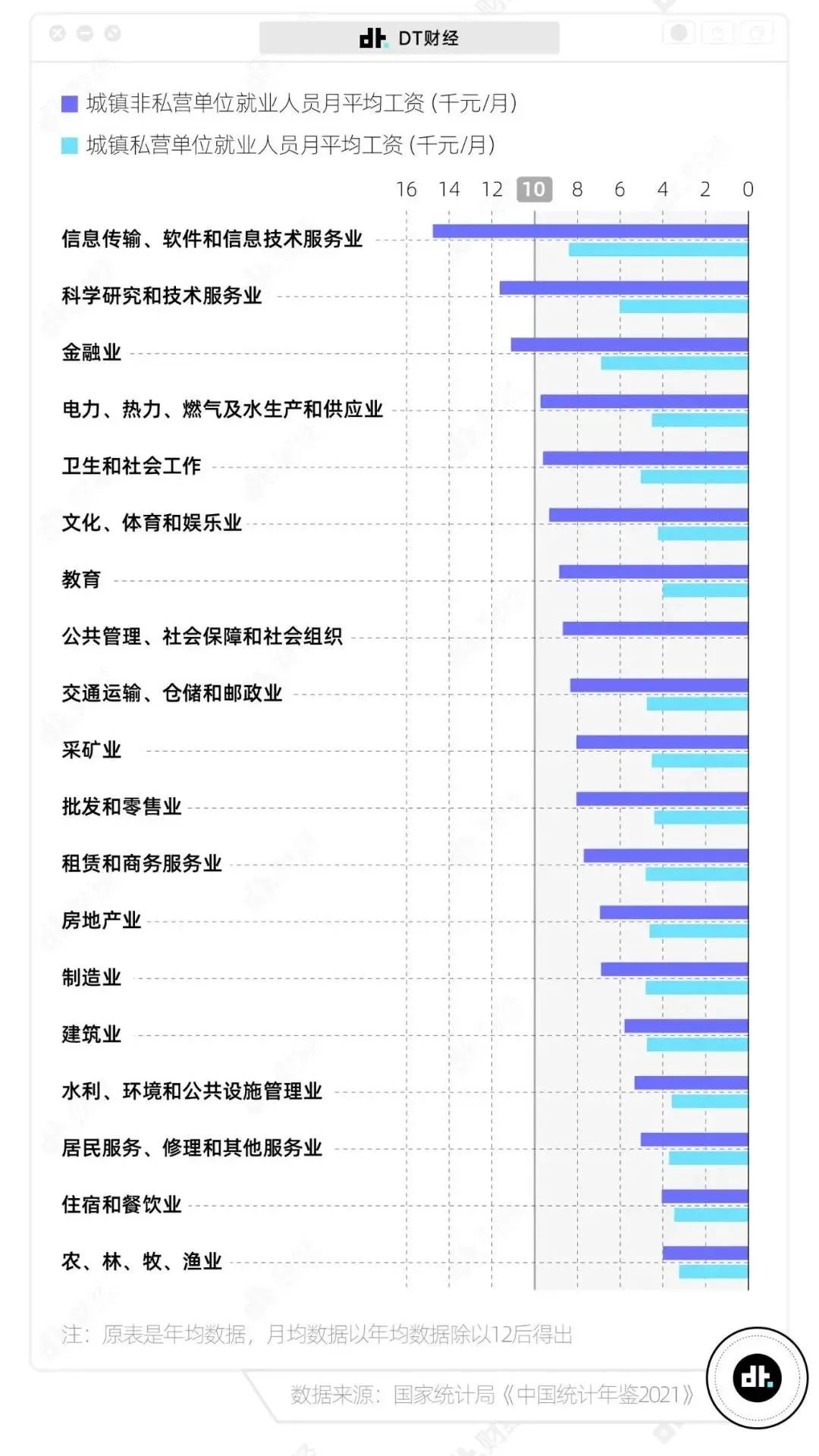 在職業(yè)道路中,很多時(shí)候選擇大于努力。選擇一個(gè)有前景的行業(yè),將直接決定你的薪資水平。國家統計局《中國統計年鑒2021》的數據顯示,2020年各行業(yè)平均月工資最高的三個(gè)行業(yè)分別是信息傳輸、軟件和信息技術(shù)服務(wù)業(yè),科學(xué)研究和技術(shù)服務(wù)業(yè),以及金融業(yè)。