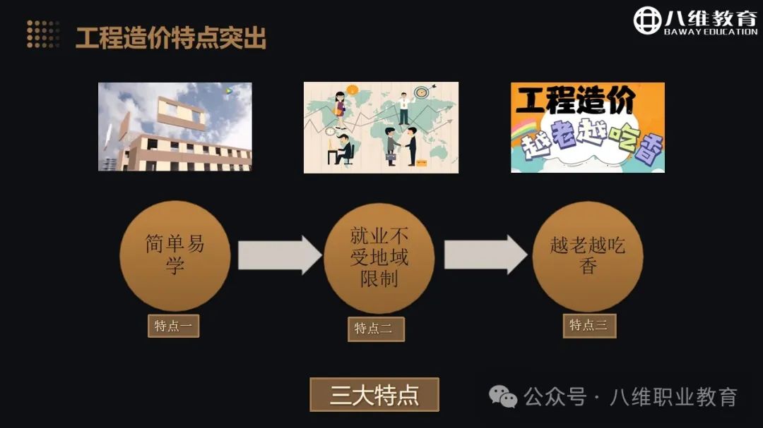 工程造價(jià)專(zhuān)業(yè)在建筑行業(yè)是與錢(qián)打交道的專(zhuān)業(yè),主要是對工程項目的投資額、成本、利潤空間進(jìn)行預算。為什么在建筑行業(yè)整體增速放緩的背景下,工程造價(jià)領(lǐng)域卻能逆勢上行?八維建筑專(zhuān)業(yè)工程造價(jià)方向如何幫助學(xué)子們在建筑領(lǐng)域內實(shí)現華麗轉身,高質(zhì)量就業(yè)呢?