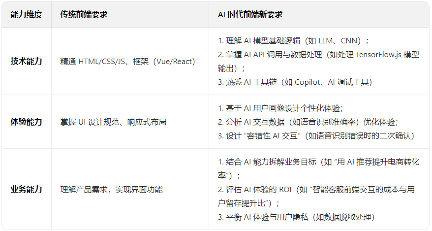 二、前端領(lǐng)航:AI 時(shí)代前端的 “新定位” 與 “新能力”