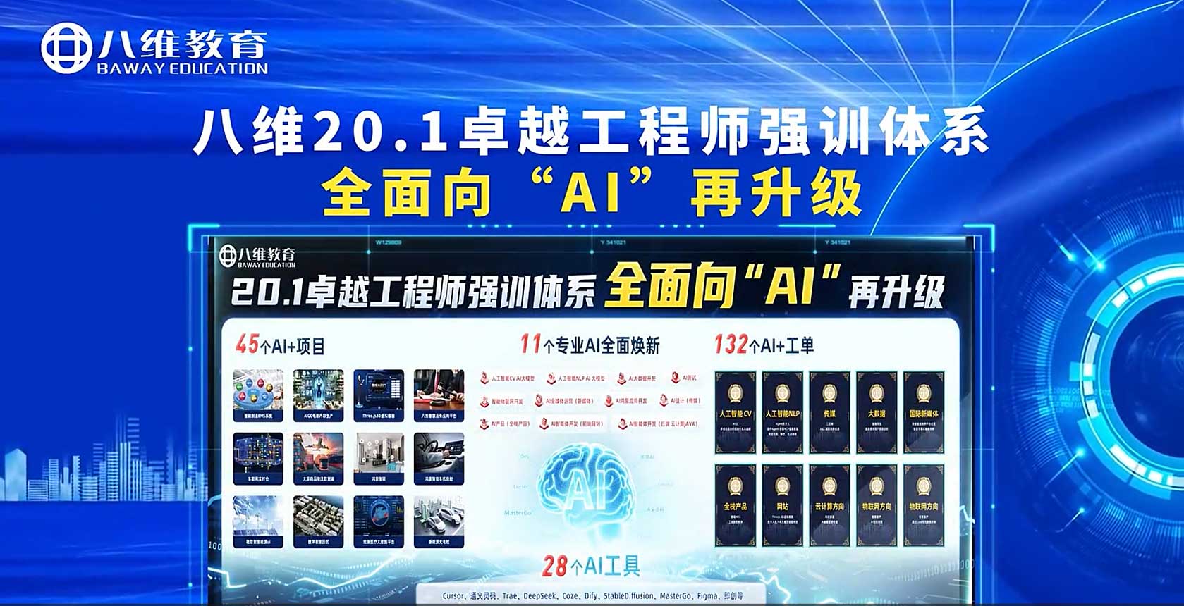 在29年的發(fā)展中,八維聚焦學(xué)生技能鍛造與職業(yè)成長(cháng),為學(xué)生制定了可以激發(fā)潛能的個(gè)性化培養路徑。面對日新月異的技術(shù)浪潮,八維不斷引入前沿知識,2025年全新推出20.1版“卓越工程師強訓體系”。根據市場(chǎng)變化,面向AI持續升級,輻射智能制造、智慧城市、醫療、金融、電商等熱門(mén)領(lǐng)域,多維度淬煉學(xué)生的專(zhuān)業(yè)功力與綜合素養。