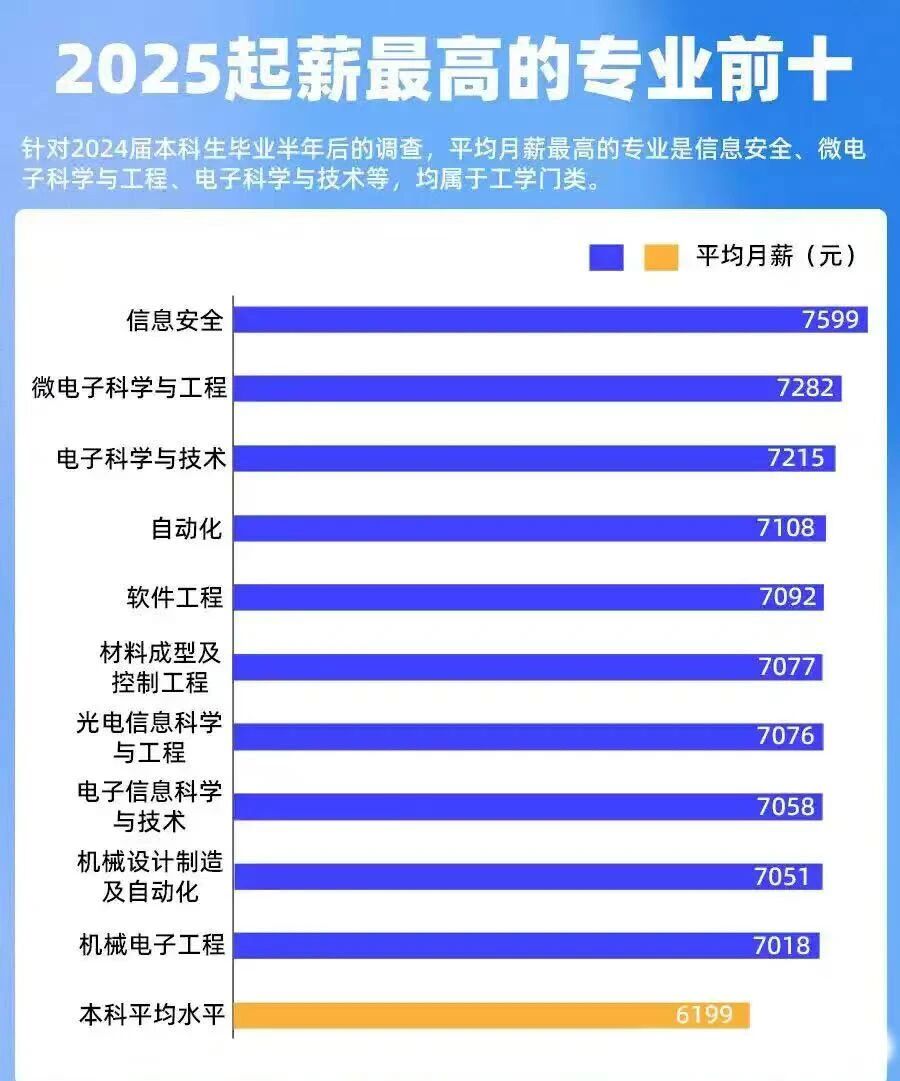 《2025年中國本科生就業(yè)報告》明確顯示:2024屆本科生畢業(yè)后,平均月薪最高的專(zhuān)業(yè)是信息安全專(zhuān)業(yè),其中信息安全和軟件工程已經(jīng)連續五年躋身前五。