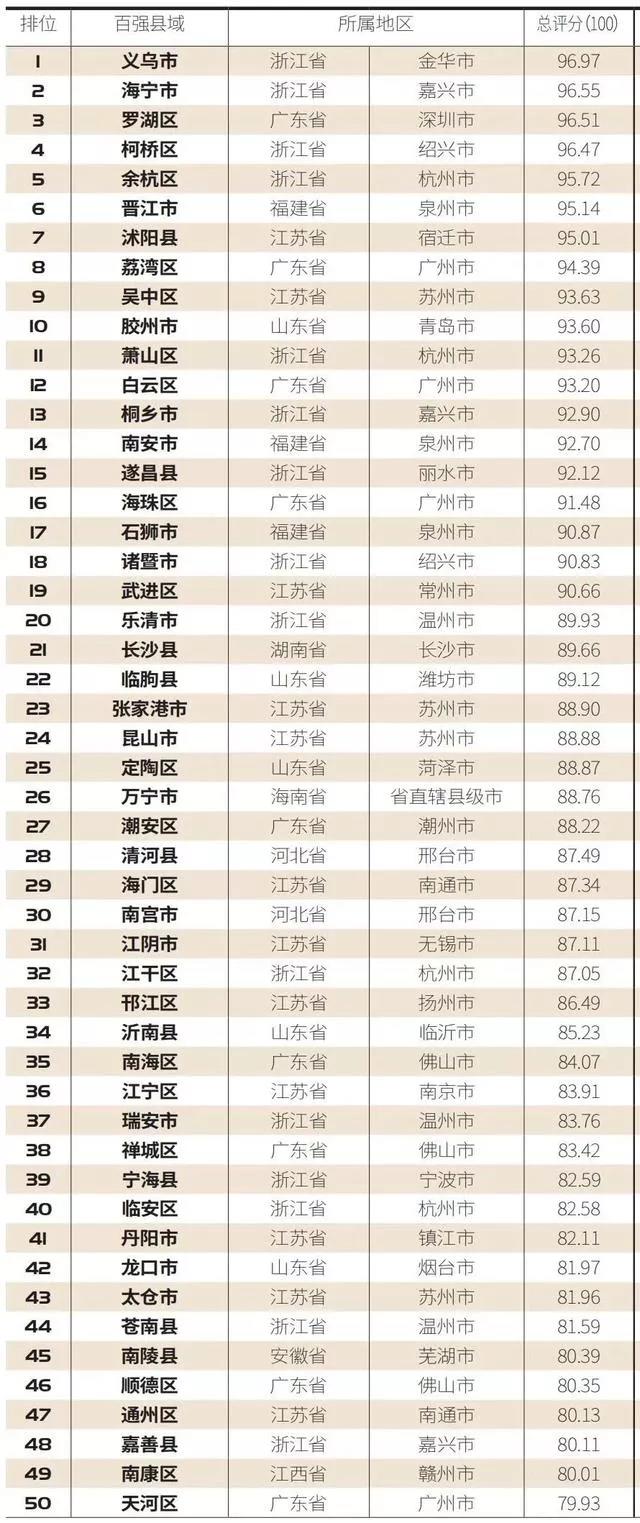 近日,“2021中國縣域電商競爭力百強榜”出爐了。在這份榜單上,共有19個(gè)省份的縣域榜上有名:浙江省17個(gè),廣東省、江蘇省各13個(gè),這3個(gè)省份成為中國縣域電商競爭力最優(yōu)省份。河北省、山東省各8個(gè),江西省、山西省各6個(gè),福建省5個(gè),這5個(gè)省份構成了第二梯隊。