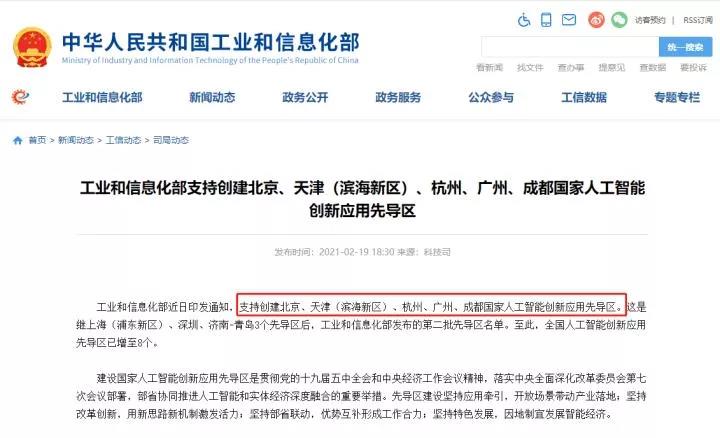 工業(yè)和信息化部近日印發(fā)通知,支持創(chuàng )建北京、天津(濱海新區)、杭州、廣州、成都成立國家人工智能創(chuàng )新應用先導區。這是繼上海(浦東新區)、深圳、濟南-青島3個(gè)先導區后,第二批成立的先導區。至此,全國人工智能創(chuàng )新應用先導區已增至8個(gè)。