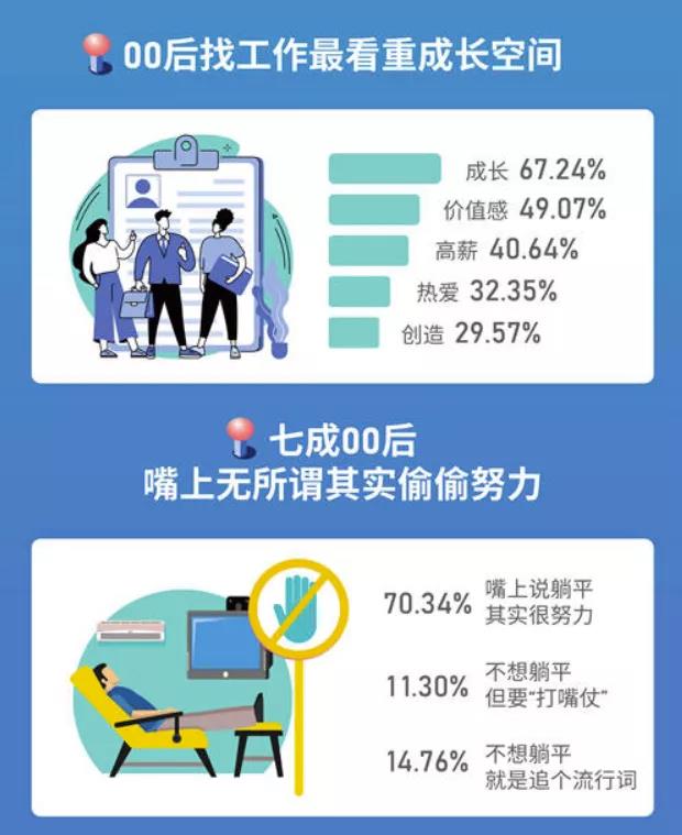 而且,更可貴的是,這批“00后”不再把工作視為單純的“飯碗”——他們把工作當成是展示、發(fā)揮的舞臺。比起賺錢(qián),他們更在意成長(cháng)空間和個(gè)人在工作中的價(jià)值體現。不得不說(shuō),這樣的認知是領(lǐng)先的,值得點(diǎn)贊。