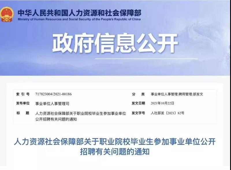 破除學(xué)歷歧視從黨政機關(guān)、事業(yè)單位、國有企業(yè)做起,能起到風(fēng)向標作用,帶來(lái)更大的正向引導。這不,就在10月22日,人社部就印發(fā)了《關(guān)于職業(yè)院校畢業(yè)生參加事業(yè)單位公開(kāi)招聘有關(guān)問(wèn)題的通知》,詳細的要求中更是提到了事業(yè)單位可以降低對學(xué)歷的要求,或者不再設置學(xué)歷要求,主要看專(zhuān)業(yè)對口程度和職業(yè)技能等級要求。