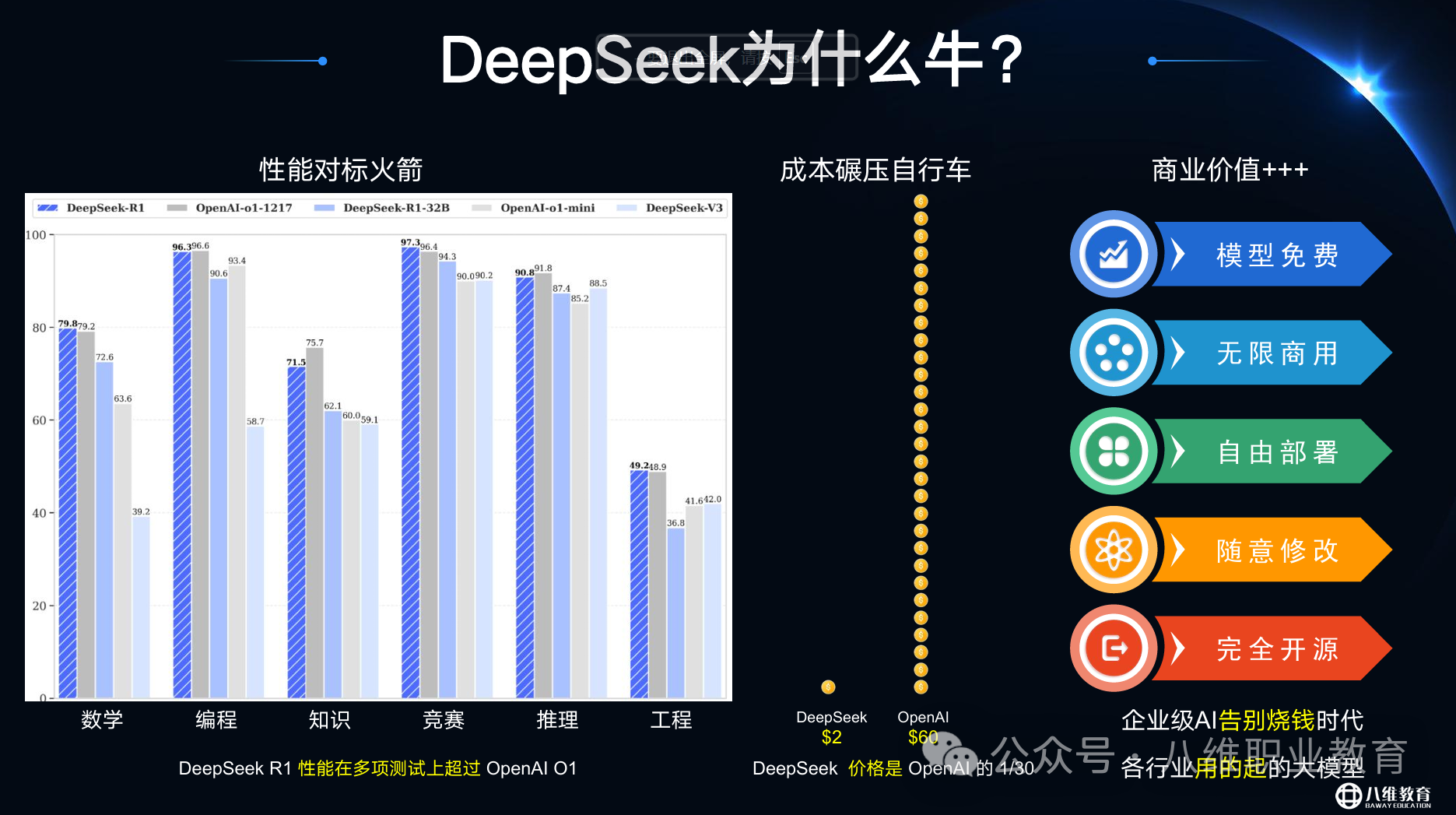 科技感提升:接入DeepSeek展示了八維教育對前沿科技的掌握和應用,增強了品牌的科技形象。
