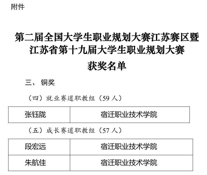 在本次比賽中,全省163所高校,本科72所、高職91所,704487名學(xué)生參賽。在七十余萬(wàn)參賽者中,共計483人獲獎,其中,宿職院斬獲江蘇賽區就業(yè)賽道職教組一枚銅獎,成長(cháng)賽道職教組兩枚銅獎。