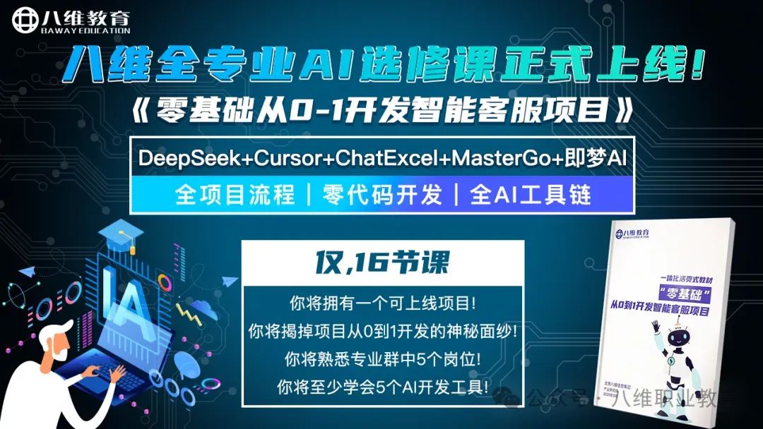 在課程設置方面,八維教育緊密結合市場(chǎng)需求和技術(shù)發(fā)展趨勢,精心設計了一系列具有前瞻性和實(shí)用性的課程。以 2025 年推出的《零基礎從 0 - 1 開(kāi)發(fā)智能客服項目》的 AI 課程為例,該課程旨在讓學(xué)生從基礎學(xué)起,逐步掌握開(kāi)發(fā)智能客服項目的全過(guò)程。通過(guò)實(shí)際項目的操作,學(xué)生能夠將所學(xué)的理論知識應用到實(shí)踐中,提升自己的動(dòng)手能力和解決實(shí)際問(wèn)題的能力。同時(shí),八維教育還注重課程的更新與迭代,及時(shí)將最新的技術(shù)和行業(yè)應用融入到教學(xué)內容中,確保學(xué)生所學(xué)知識始終與市場(chǎng)需求保持同步。