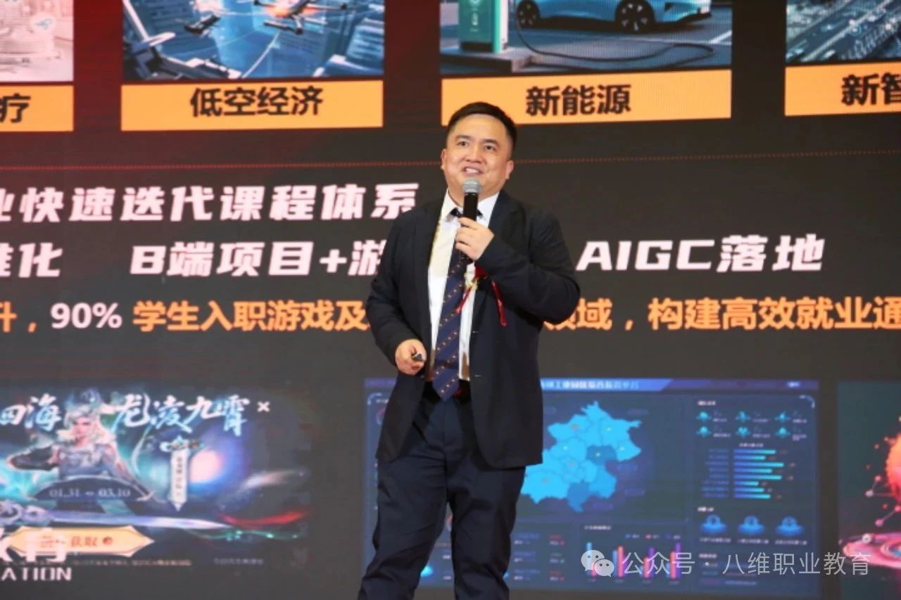 八維教育以深厚的技術(shù)積淀為依托,正以創(chuàng )新者的姿態(tài)重構職業(yè)教育新范式。接下來(lái),文化與產(chǎn)業(yè)研究院副院長(cháng)郭洵和上海校區教學(xué)副校長(cháng)劉碩分別從不同角度為大家深度解讀了AI時(shí)代下八維職業(yè)教育的破局之道。