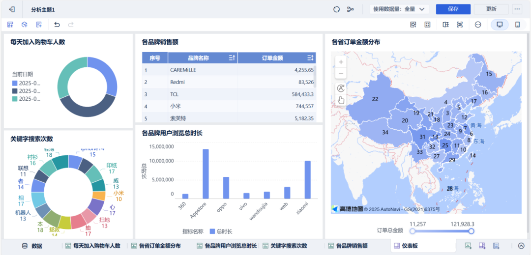 ◆實(shí)時(shí)數據看板:客單價(jià)趨勢、用戶(hù)行為熱力圖、爆款商品分布等動(dòng)態(tài)圖表,能實(shí)時(shí)反映用戶(hù)行為和消費偏好,助力企業(yè)精準營(yíng)銷(xiāo),提升營(yíng)銷(xiāo)效果。