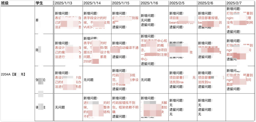 在此基礎上,我們進(jìn)一步強化了過(guò)程性學(xué)習管理機制,教師每日對學(xué)生的學(xué)習進(jìn)展進(jìn)行跟蹤與檢查(俗稱(chēng)“日Check”),重點(diǎn)關(guān)注基礎薄弱學(xué)生的學(xué)習狀態(tài),及時(shí)發(fā)現學(xué)習過(guò)程中出現的問(wèn)題,確保學(xué)習過(guò)程可追蹤、問(wèn)題處理有閉環(huán)。