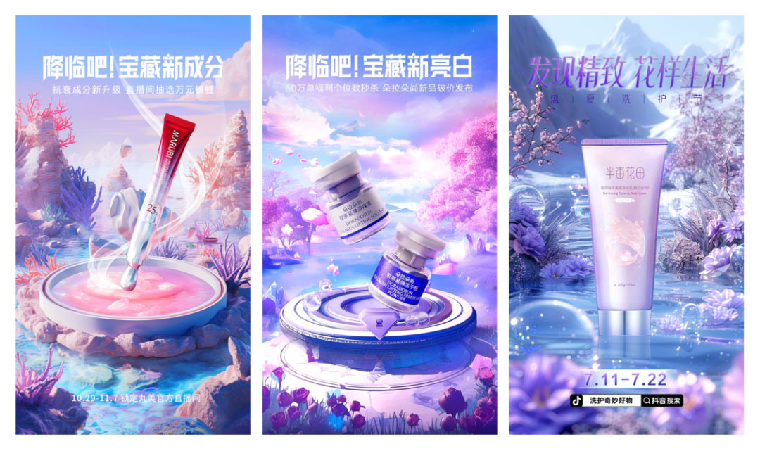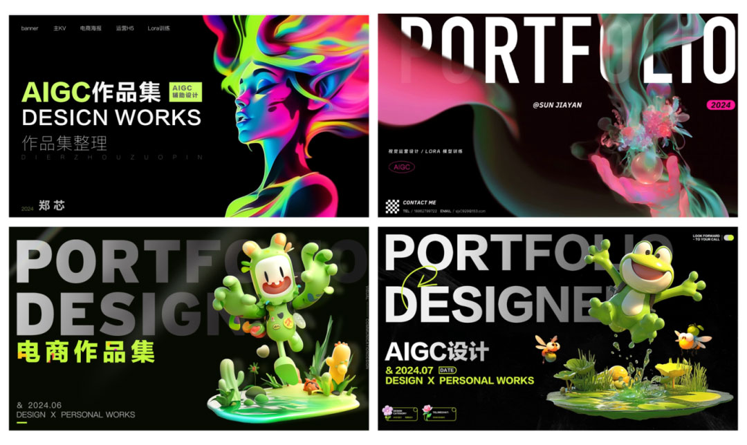 AIGC與動(dòng)效精品集:AIGC生成創(chuàng )意視覺(jué)作品、AE制作的流暢動(dòng)態(tài)特效、C4D打造立體視覺(jué)設計、多工具結合的綜合創(chuàng )意案例。