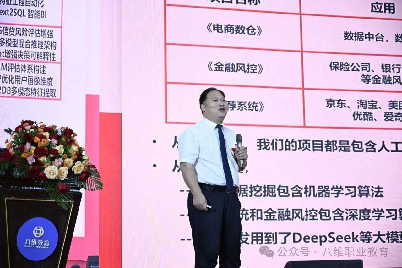 選對路,遠比走多遠要重要得多。王總表示,學(xué)生需要結合國家產(chǎn)業(yè)地圖選擇成長(cháng)路徑,而八維的穩健發(fā)展,正是源于對國家產(chǎn)業(yè)戰略的緊密跟隨。在《國務(wù)院關(guān)于深入實(shí)施“人工智能+”行動(dòng)的意見(jiàn)》發(fā)布后,八維迅速響應,積極布局,制定各專(zhuān)業(yè)落地方案,近期還將陸續推出一系列前沿新項目。這既是八維硬核行動(dòng)與前瞻視野的體現,更是八維人將國家戰略轉化為育人實(shí)踐的行動(dòng)力與創(chuàng )新精神的寫(xiě)照。