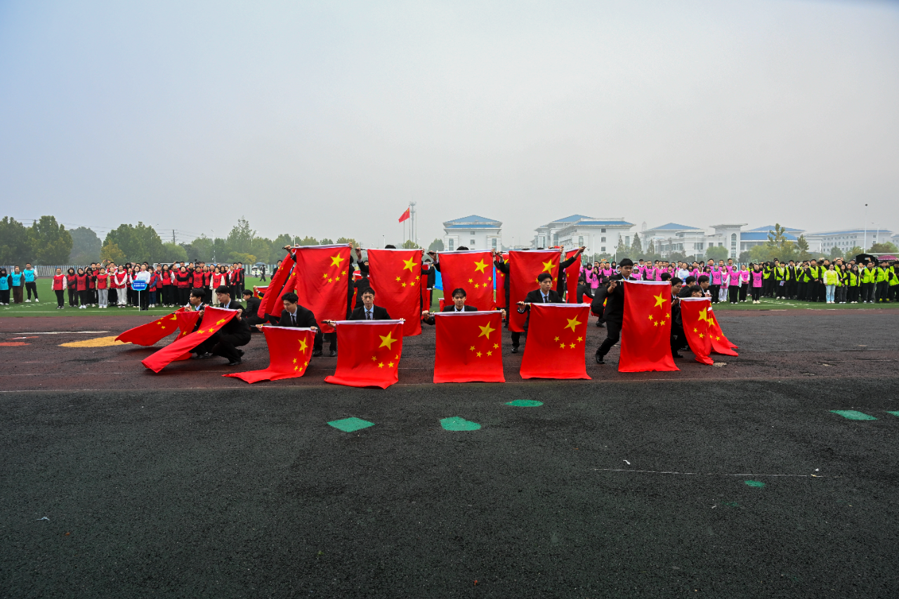 隨后,宿遷校區的學(xué)子們精心編排的旗舞表演,將開(kāi)幕式推向高潮。細雨紛飛中,旗面翻涌,如烈火在雨中燃燒,陣型變幻,似波濤在風(fēng)中奔騰,掌聲與喝彩聲穿透雨幕,嗨翻現場(chǎng)。