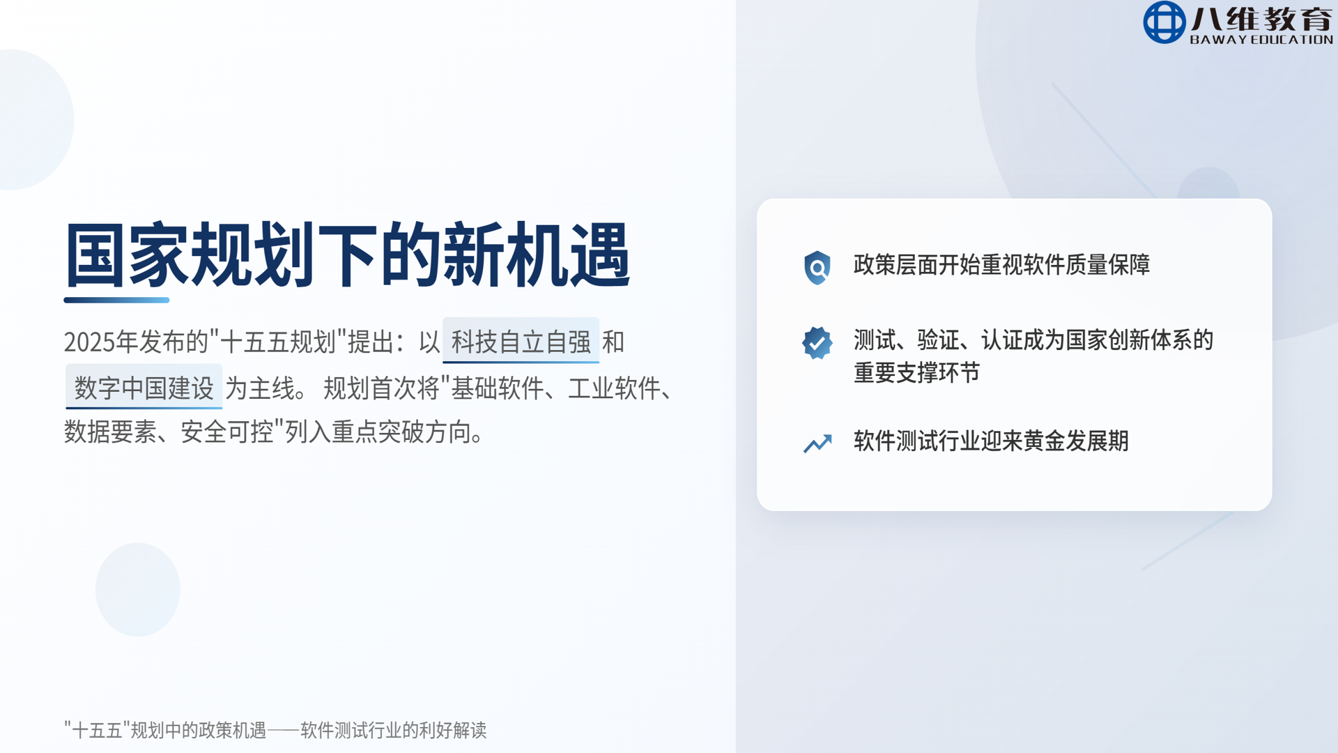 “十五五”規劃戰略引領(lǐng):國家將基礎軟件、工業(yè)軟件首次列入重點(diǎn)突破方向,軟件測試從研發(fā)末端升級為“驗證+參與”的核心環(huán)節,成為科技創(chuàng )新的“質(zhì)量把關(guān)人”。