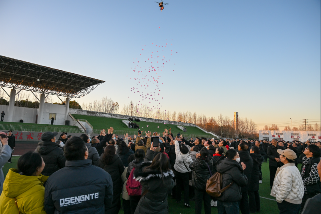 大會(huì )尾聲,八維無(wú)人機小隊騰空而起,編隊翱翔于宿遷職業(yè)技術(shù)學(xué)院的上空,靈動(dòng)穿梭、變換陣型,以極具沖擊力的視覺(jué)盛宴驚艷全場(chǎng)。