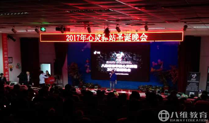 2017年12月26日晚19:30由北京八維學(xué)管處主辦,心靈驛站承辦的迎新圣誕晚會(huì )在北京八維教育第一報告廳如期舉行,本次活動(dòng)由短視頻app獨家贊助。其中星空文學(xué)社、博仁辯論社、墨香書(shū)法社、宣講團等校級社團以及各個(gè)專(zhuān)業(yè)學(xué)生會(huì )文化演講團前來(lái)助陣。